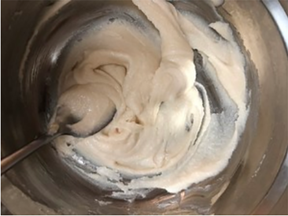 Step2:在蒸芋頭的同時,將豬油和糖攪拌在一起,稍微攪拌一下就行。