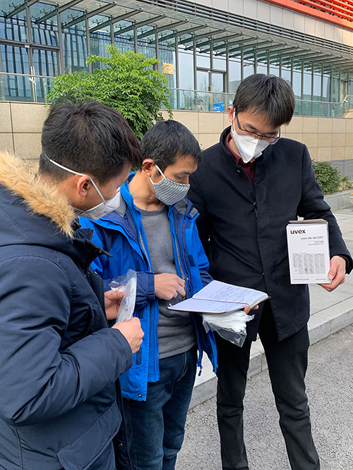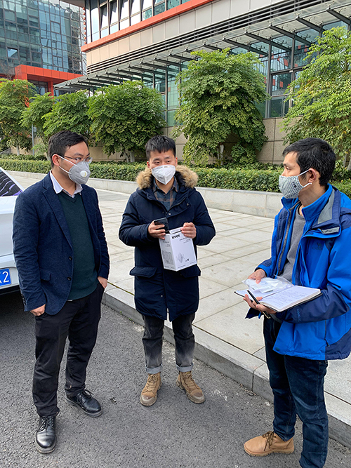 西南公司聶方華,總公司劉烽分別趕赴成都區(qū)域?yàn)樾l(wèi)計(jì)委專線開通出去查勘的同事們送防護(hù)用品及消毒液,安排防疫工作,同時(shí)慰問(wèn)一線員工,確保掌握本單位部門員工的出行動(dòng)態(tài)。