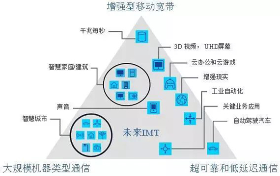 也就是說,5G要滿足三角形頂點所描述的三個場景: