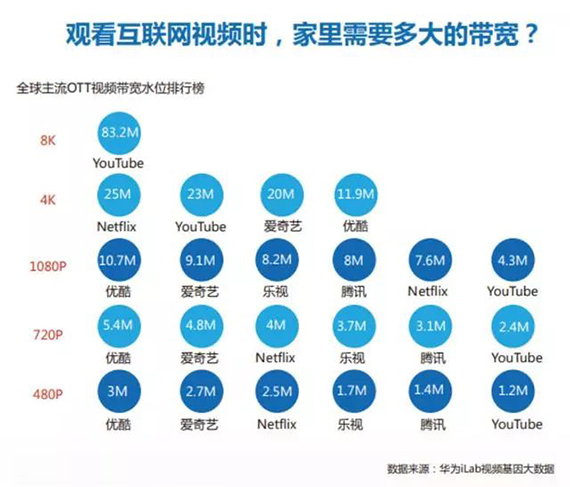 據(jù)上圖中華為的研究結(jié)論,20Mbps左右的網(wǎng)速就可以支持4K的高清視頻了,如果網(wǎng)速能達到83Mbps,8K視頻也不在話下!