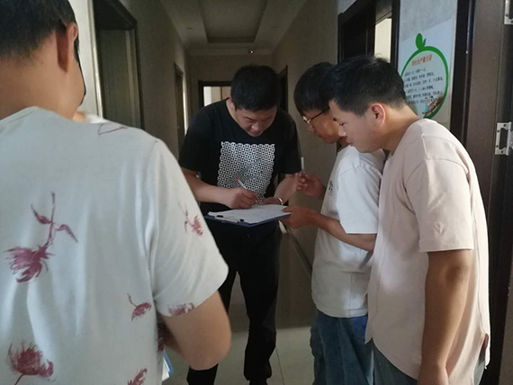 講解完畢后,大家正式開始實操:設計員選取辦公室所在樓層,帶領大家現場勘查、繪制草圖。要求對室內每個拐角、每個房間都做到二維定位,保證現場草圖繪制完整。這也是為了充分保障后期CAD圖紙設計時能做到資料完善,內容詳盡,指導性強,可操作性高!