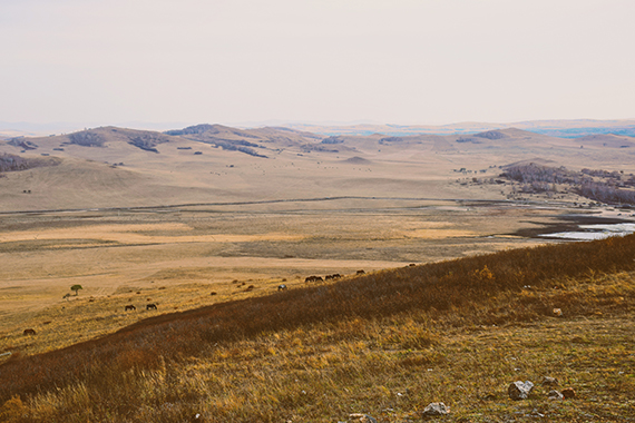 站在草原上,舉目是無盡的藍天與灰黃的草地,沒有水泥鋼筋的現(xiàn)代建筑,時間在草原上似乎靜止了,如同與世隔絕一般,它寬廣的懷抱可以容納一切,塵世的煩惱在這里變得無足輕重。