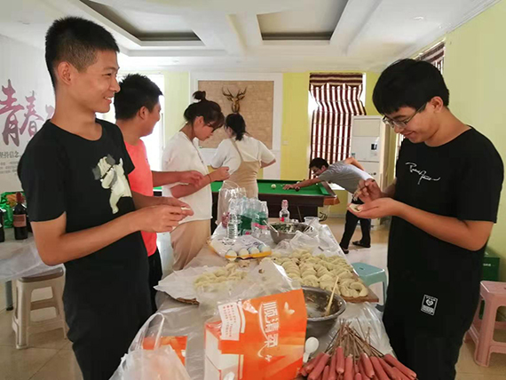 在廚房,大家分工明確,互幫互助,有的人摘菜洗菜,做好后勤服務工作;有的人親自下廚盡展廚藝,為大家奉上自己的拿手好菜;有的人在戶外賣力的烤串,為大家制作美味的燒烤。一盤盤餃子新鮮出爐,家的感覺彌漫在每個人的心底。