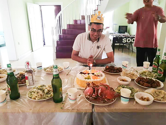日照鐵塔負責人丁正海當天剛好過生日,大家特意為他準備了生日小驚喜,為他買了生日蛋糕,一起唱生日歌。